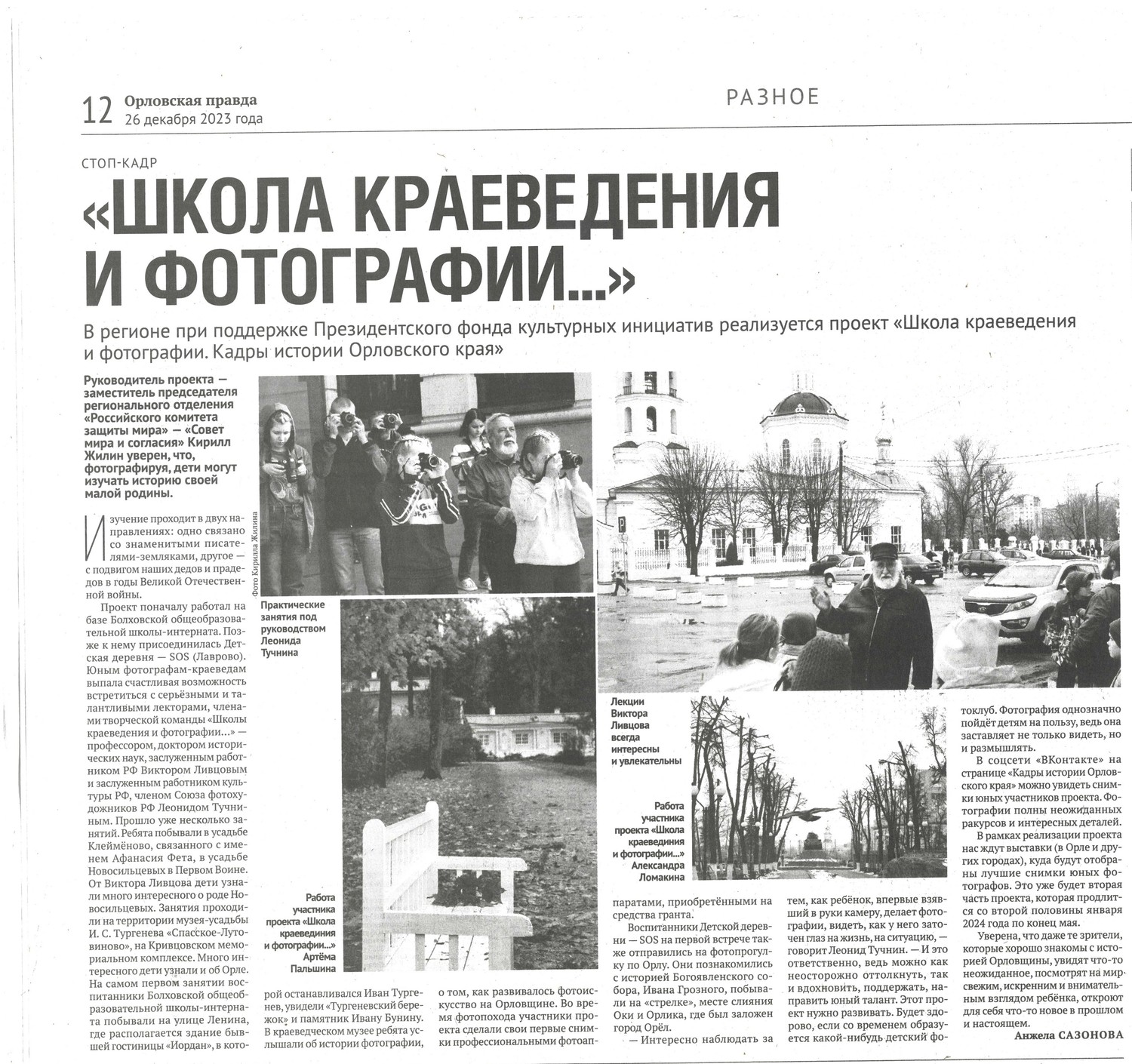 С 1 августа Орловский Совет мира и согласия работает над реализацией проекта "Школа краеведения и фотографии "Кары истории Орловского края". Проект поддержан Президентским фондом культурных инициатив.
